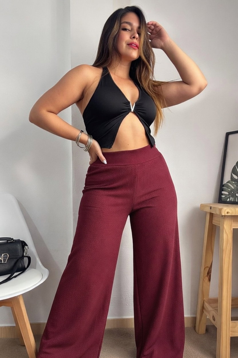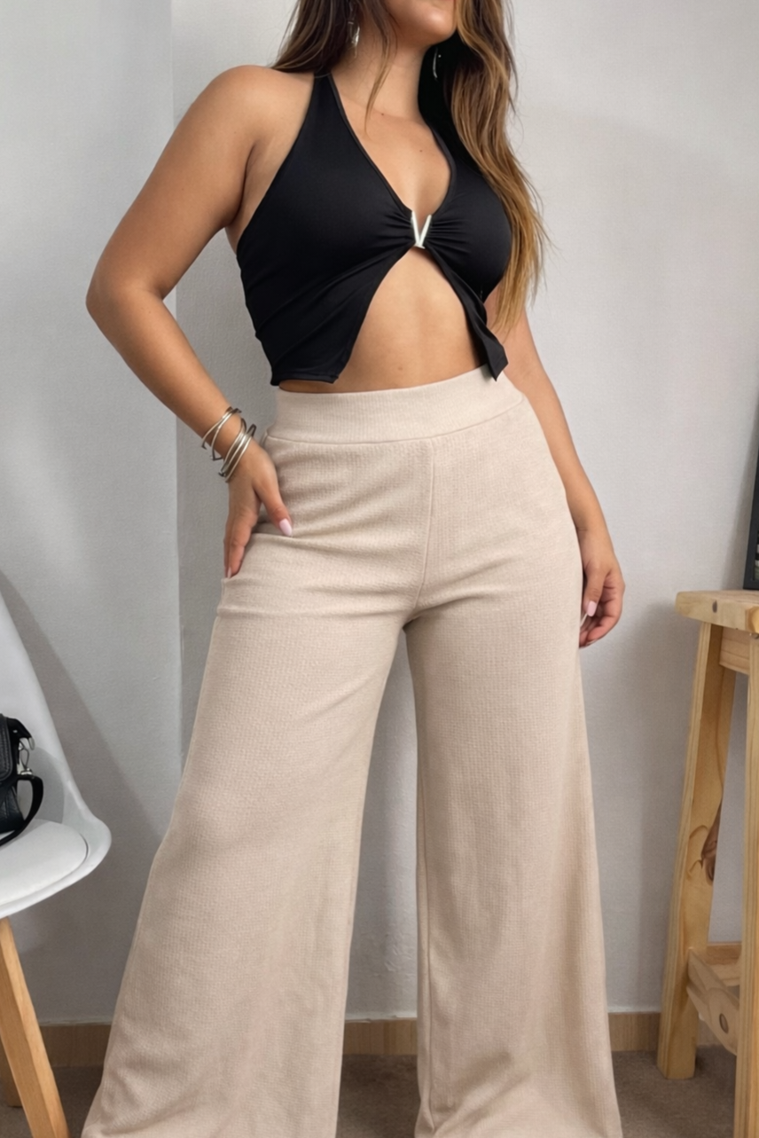 Tipo de prenda: Maxi palazo waffle premium. Confeccionado en tela waffle de alta calidad, con textura suave, flexible y de excelente caída.