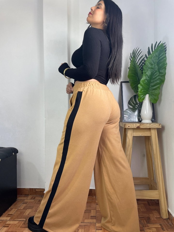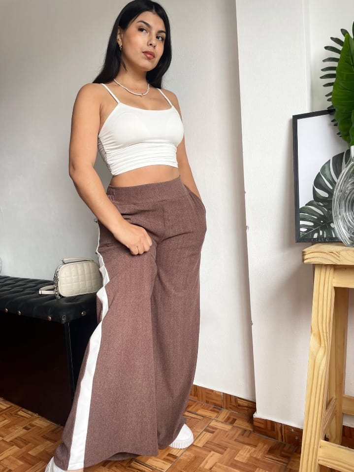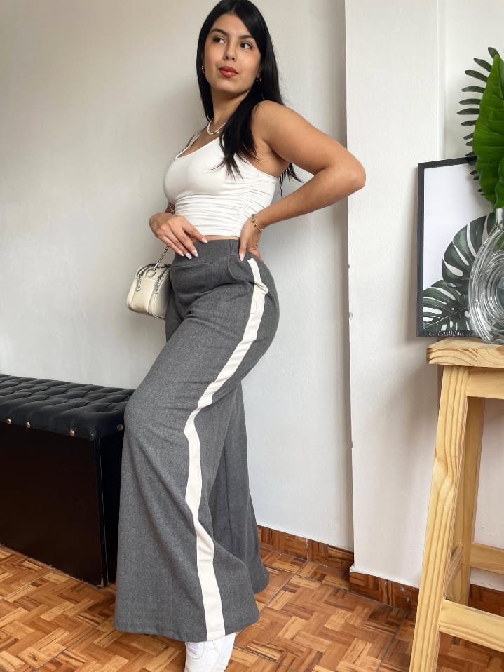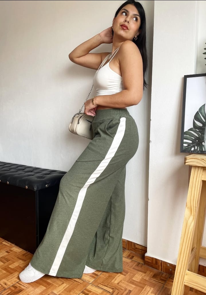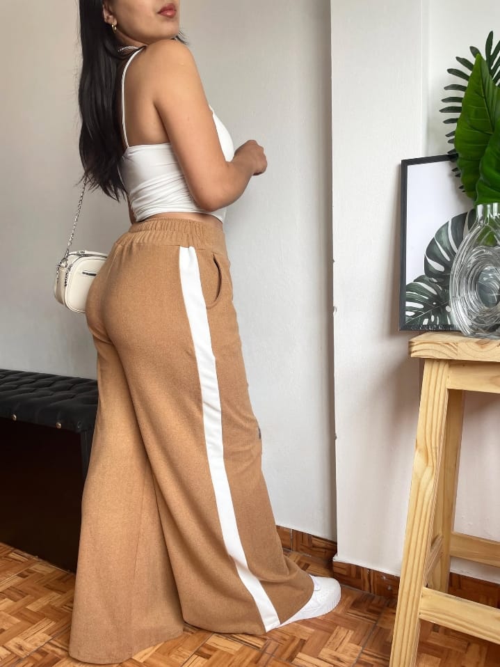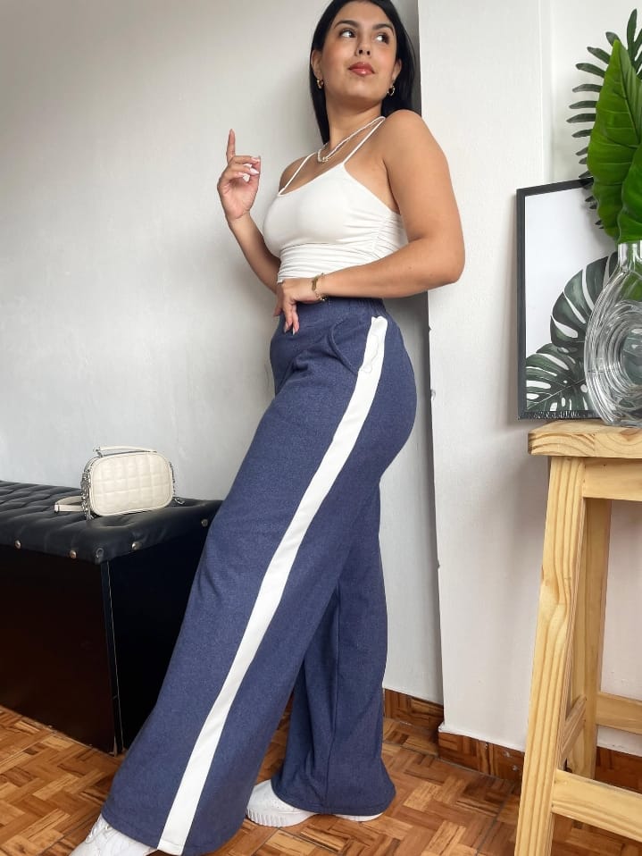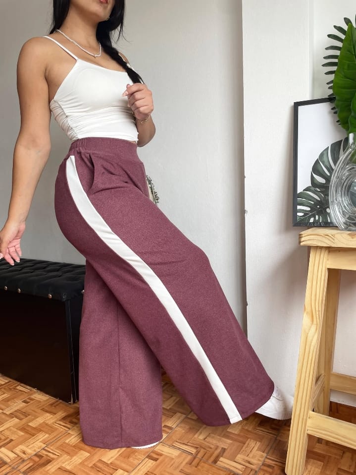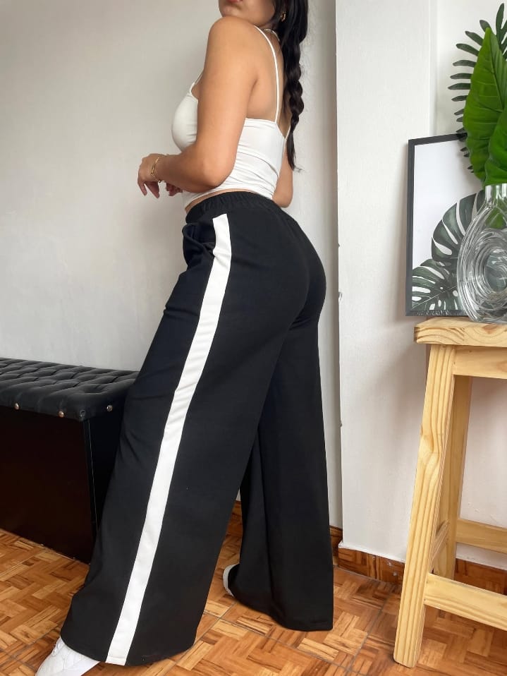 ✅ Diseño canchero y versátil: el corte palazzo con línea vertical en contraste alarga visualmente la figura y le da un toque sporty-chic que va con todo, desde zapatillas hasta un buen top para salir.
